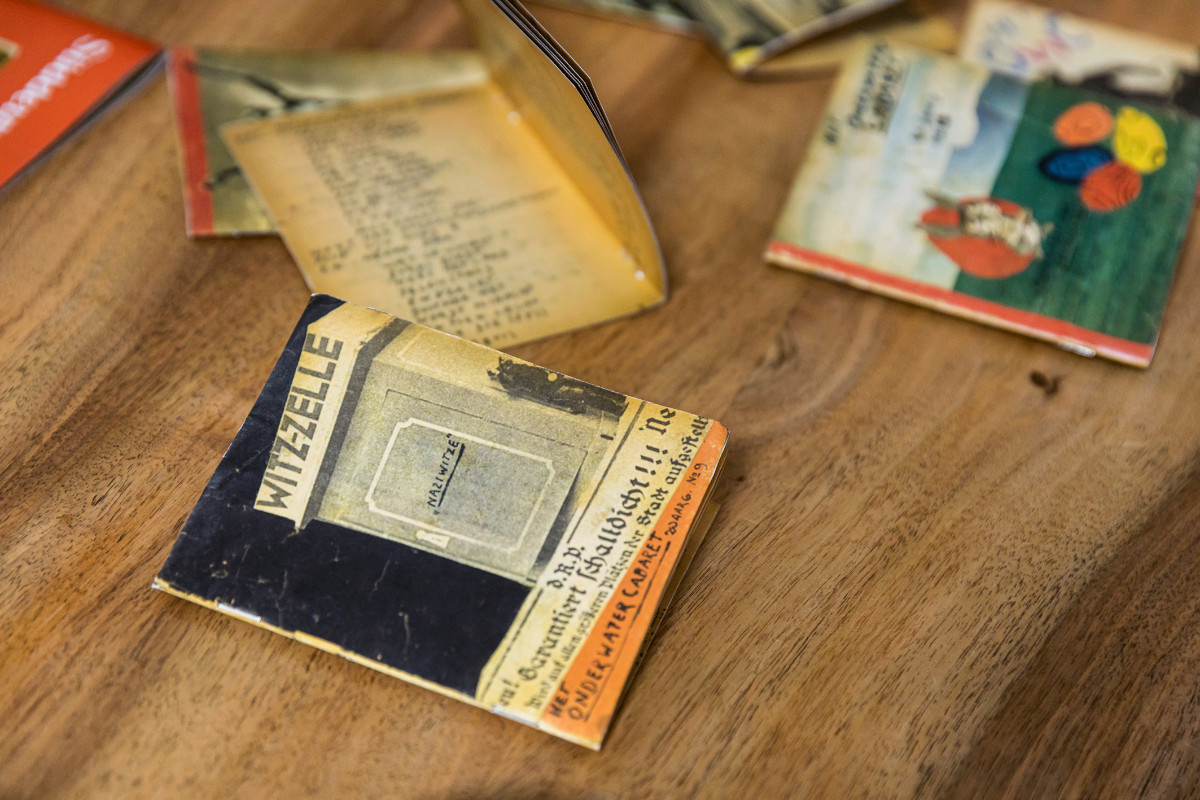 Curt Bloch erfand und gestaltete ab August 1943 ein satirisches Widerstands-Magazin, das er in Anspielung auf seine Situation als Untergetauchter „Het Onderwater Cabaret“ nannte: „Das Unterwasser-Kabarett“. Mit Reimen auf Niederländisch und auf Deutsch kommentierte er den Kriegsverlauf und verspottete die Faschisten. Gleichzeitig gewährte er Einblicke in seine Gemütszustände zwischen Hoffnung und Verzweiflung. Bis zu seiner Befreiung im Jahr 1945 veröffentlichte der Autodidakt 96 Ausgaben – in der Auflage von jeweils einem handgefertigten Exemplar, umhergereicht in einem geheimen Lesezirkel. Sie enthalten auf über 1.700 Seiten insgesamt 492 Gedichte. 80 Jahre später, nachdem sie über Jahrzehnte nahezu unangetastet und unbeachtet in einem Bücherregal in New York aufbewahrt waren, sind die Hefte nun wieder aufgetaucht – und werden erstmals komplett der Öffentlichkeit präsentiert. Was für eine Geschichte!